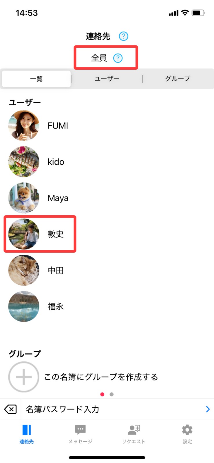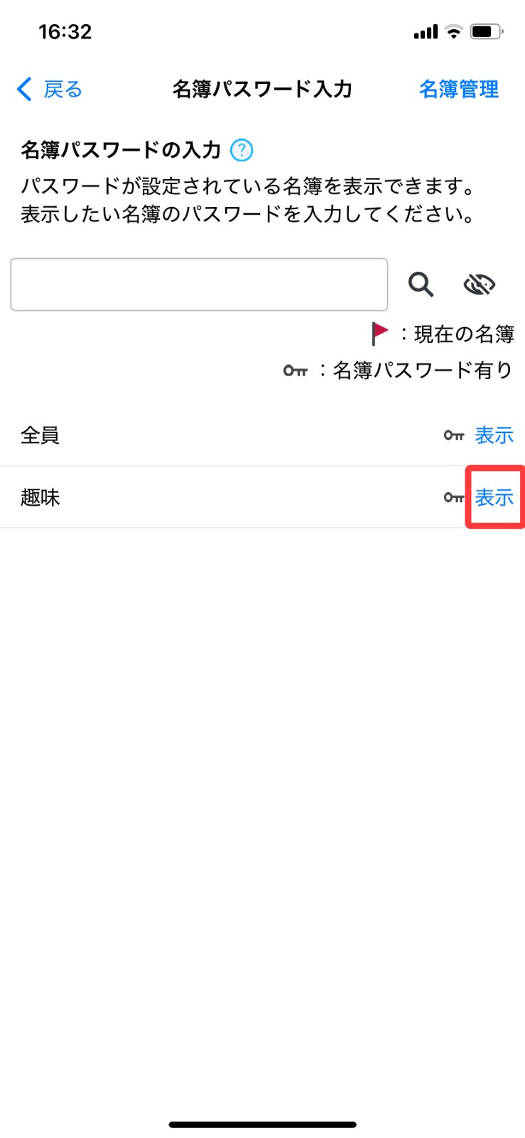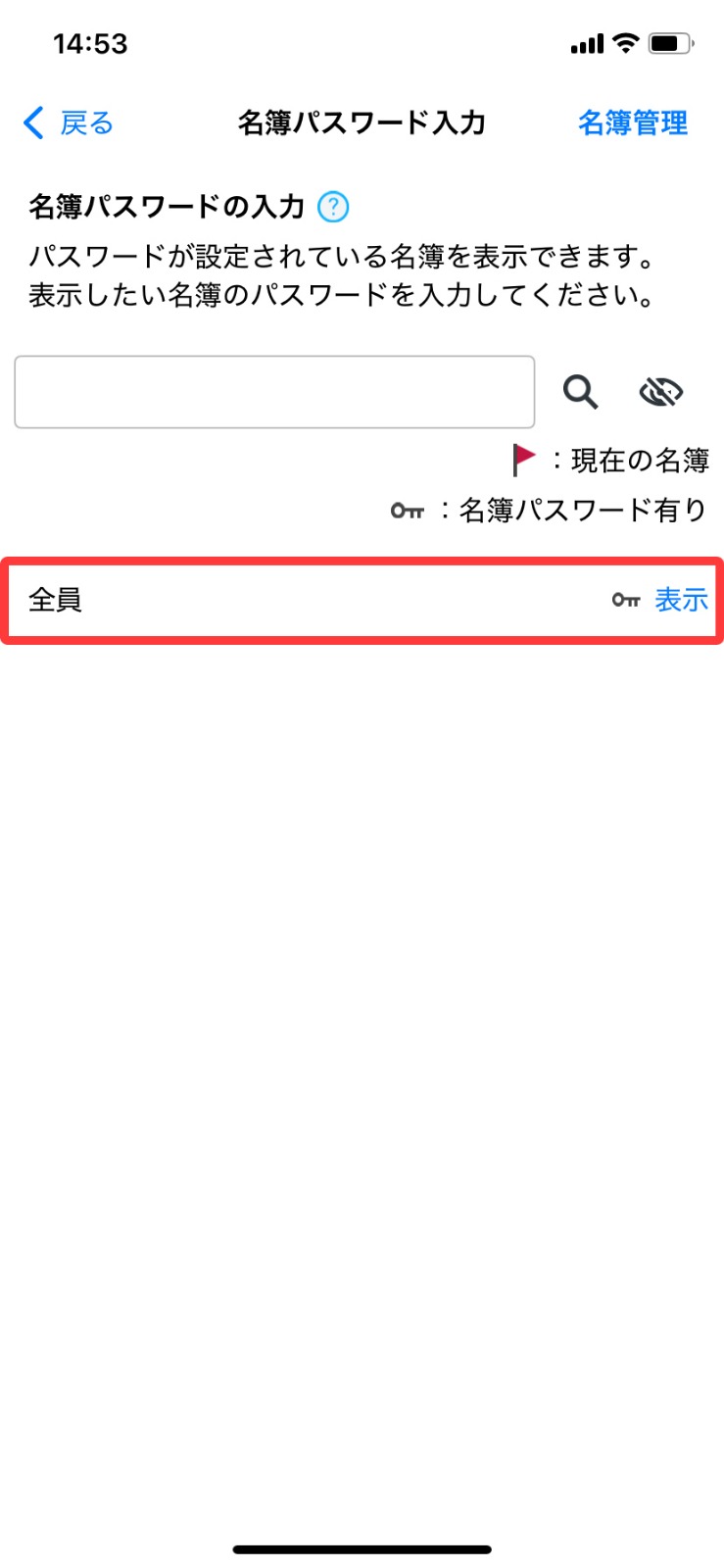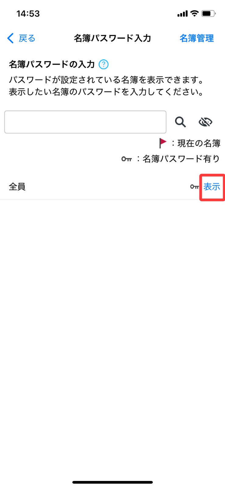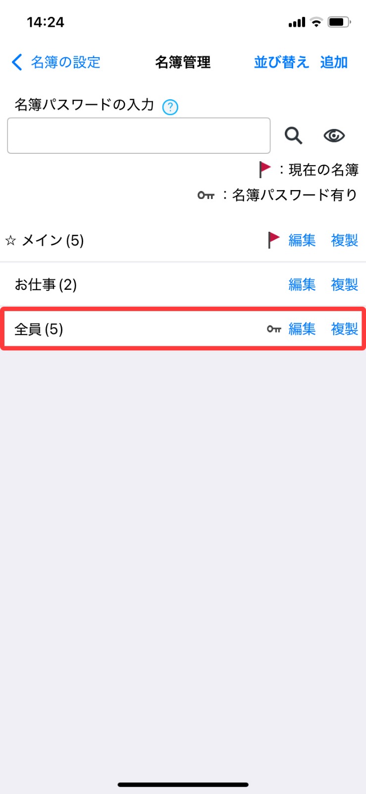 パスワードを設定した名簿は、パスワードを入力しなければ表示されません。